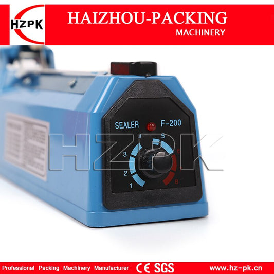 HZPK Heat Impulse Plastic Aluminum Bag Sealing Machine Iron Body Manual Sealer Small Industrial Packaging Shop Work 200mm SF-200