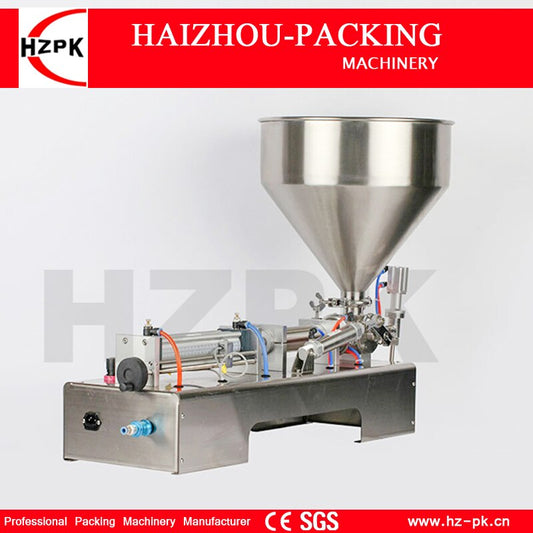 HZPK Semi-Automatic 304 Stainless Steel Horizontal Single Head Filling Paste Chocolate Cream Machine With 40L Hoper 200-1500ml